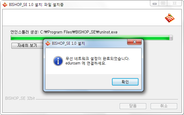 [eduroam] 연결이 완료되었습니다.