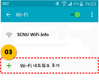 Wi-Fi 네트워크 추가 버튼을 누릅니다.