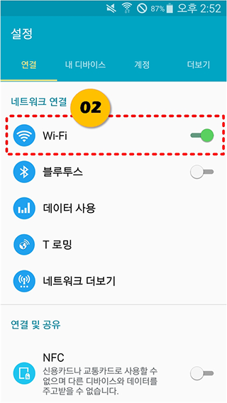 설정화면에서 Wi-Fi 누릅니다 .