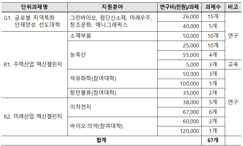 2. 지원규모: 67개 과제 내외 ※ 신청요건, 필수사항 등 상세내용은 붙임자료 참조